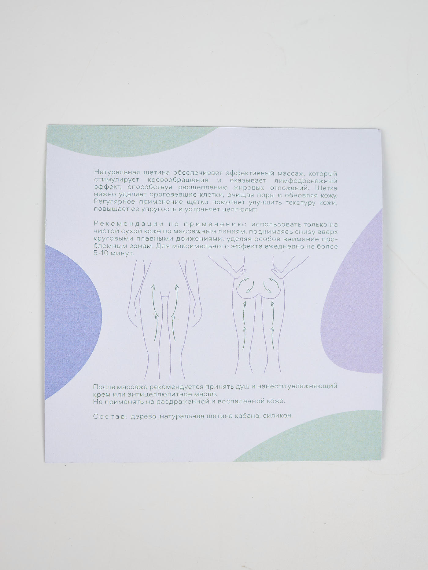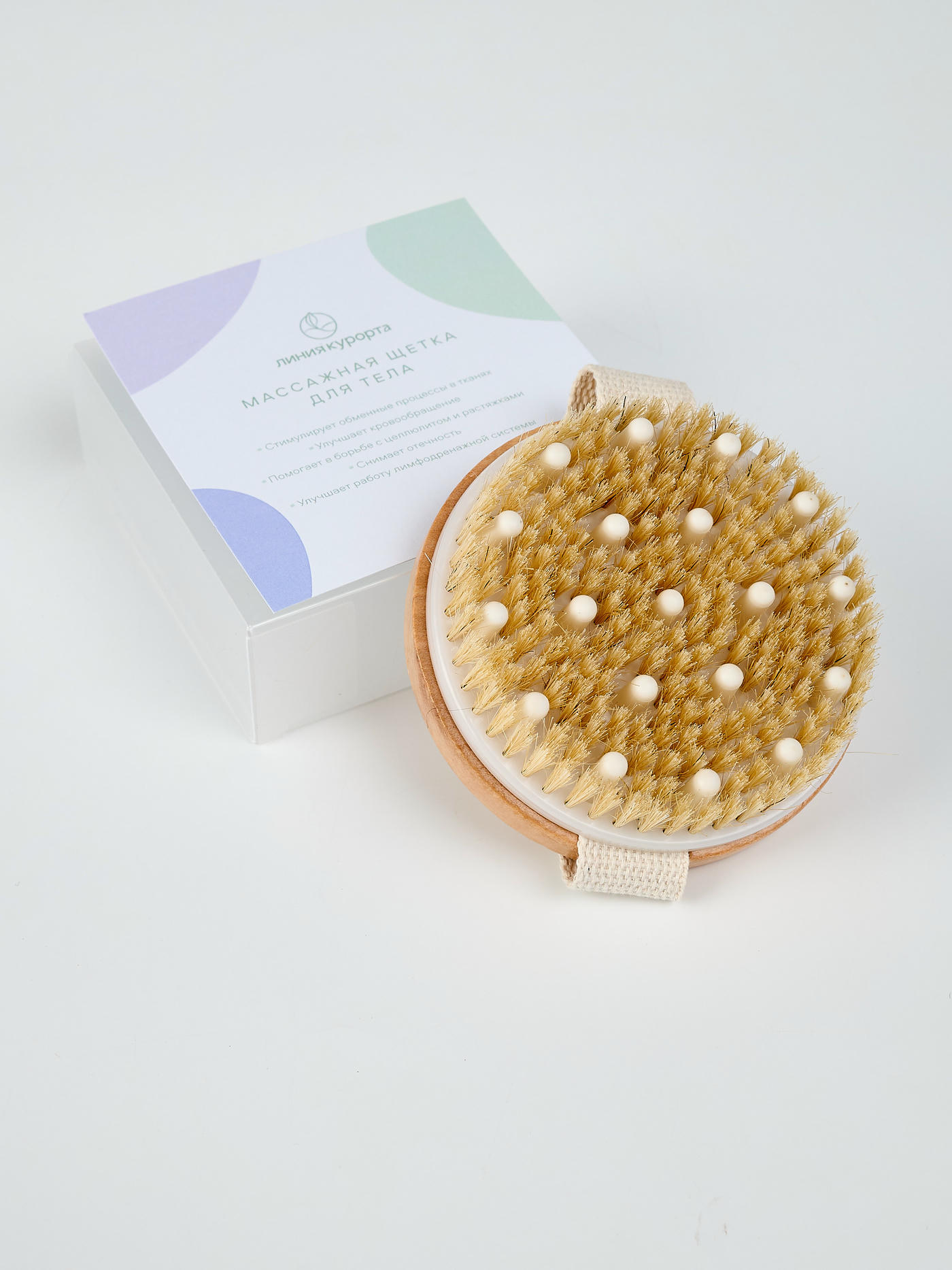 Натуральная щетина обеспечивает эффективный массаж, который стимулирует кровообращение и оказывает лимфодренажный эффект, способствуя расщеплению жировых отложений. Щетка нежно удаляет ороговевшие клетки, очищая поры и обновляя кожу. Регулярное применение щетки помогает улучшить текстуру кожи, повышает ее упругость и устраняет целлюлит.