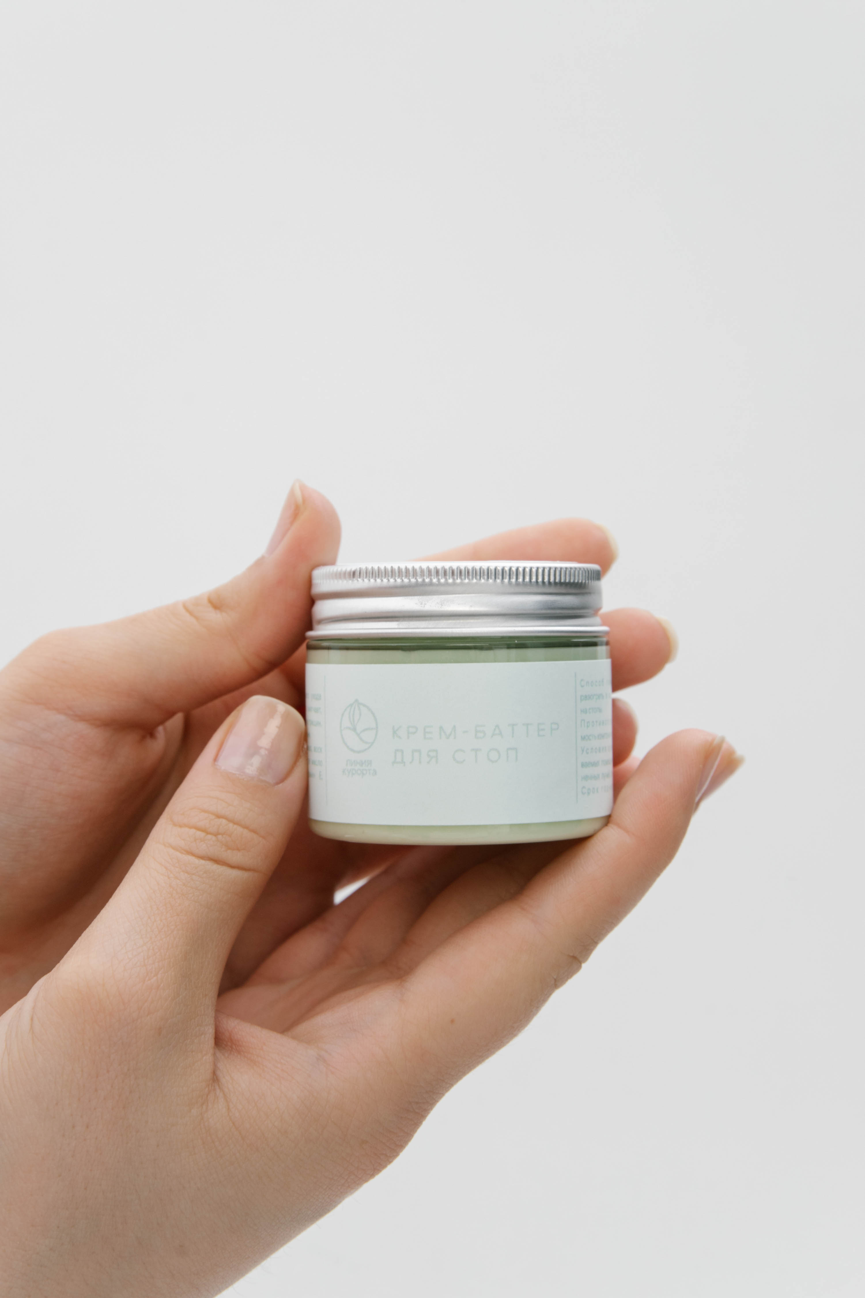 Крем-баттер для стоп предназначен для интенсивного восстановления сухой и огрубевшей кожи. Масла ши и какао глубоко питают и смягчают, помогая восстановить комфорт и гладкость кожи. Оливковое масло насыщает витамином Е и улучшает эластичность. Пчелиный воск укрепляет защитный барьер, снижает сухость и способствует заживлению микротрещин. Ланолин усиливает смягчающее действие, а ментол и эфирное масло мяты обеспечивают охлаждающий и освежающий эффект, придавая ощущение лёгкости и чистоты.